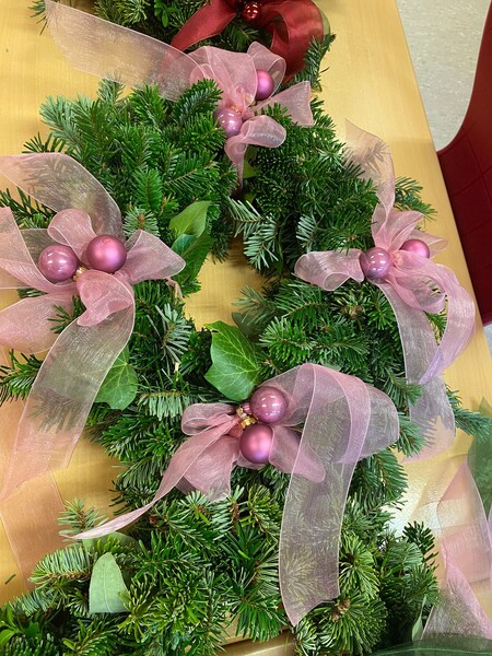 Die PTS-SchülerInnen (Sparte Handel und Tourismus) haben in Fachpraxis voller Vorfreude auf die Adventzeit wunderschöne Tür- und Adventkränze gebunden.
