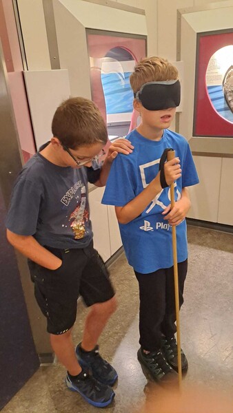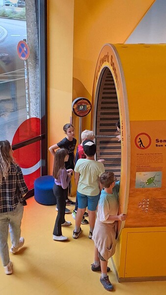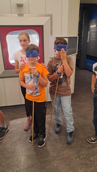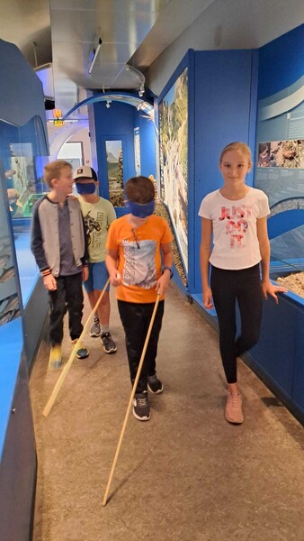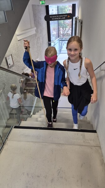 Am Vormittag waren die SchülerInnen im Haus der Natur, haben das Science Center erkundet und beim Workshop ,,Rundgang im Dunkeln" spannende Eindrücke gesammelt.