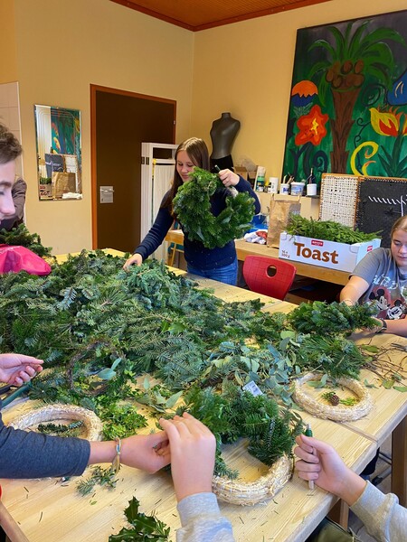 Die PTS-SchülerInnen (Sparte Handel und Tourismus) haben in Fachpraxis voller Vorfreude auf die Adventzeit wunderschöne Tür- und Adventkränze gebunden.